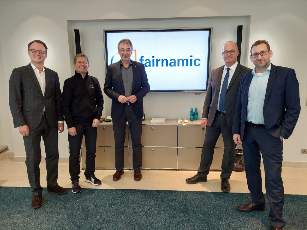 Foto (v.l.n.r.): Jörg Seyffart (Geschäftsleitung Messe Frankfurt), Klaus Wellmann (Geschäftsführer Messe Friedrichshafen), Uwe Behm (Geschäftsführer Messe Frankfurt), Andreas Kaster (Geschäftsleitung Messe Frankfurt) und Stefan Mittag (Geschäftsführer fairnamic) © Messe Frankfurt