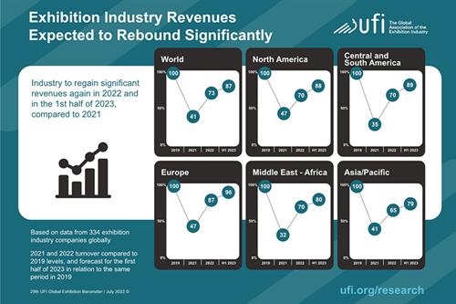 Nachdem 2021 noch deutliche Auswirkungen der Corona-Pandemie zu spüren waren, erholt sich die Messewirtschaft weltweit zügig. Dies zeigt die jüngste Ausgabe des Global Exhibition Barometer des Weltmesseverbandes UFI. In einigen Märkten erreichen Messen das Vor-Corona-Niveau bereits im nächsten Jahr.